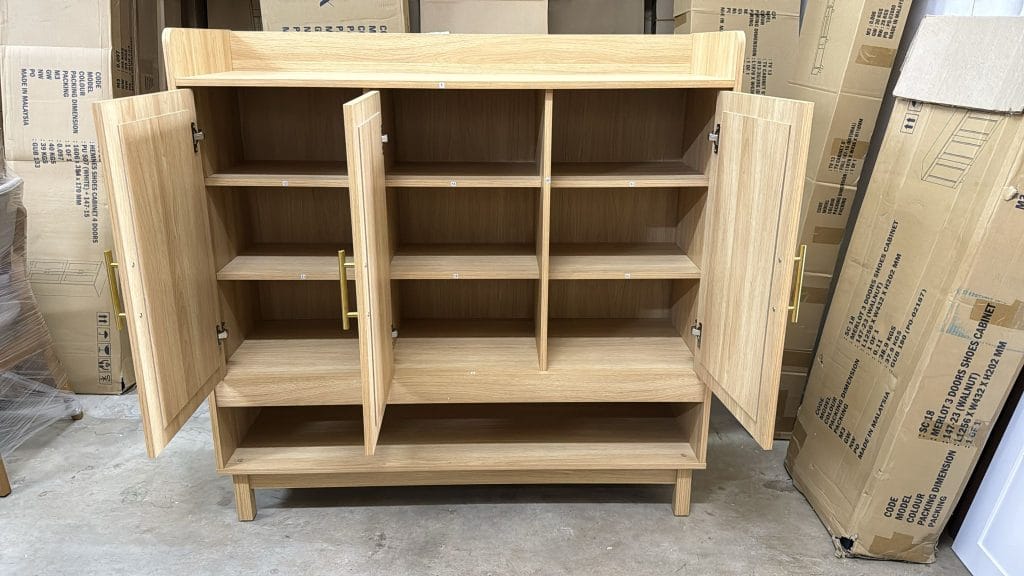- Large Capacity: Three doors conceal ample space for all your footwear